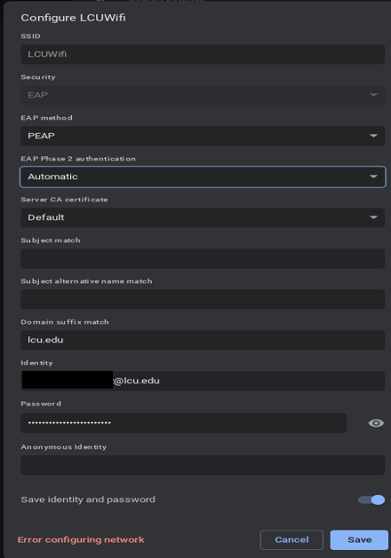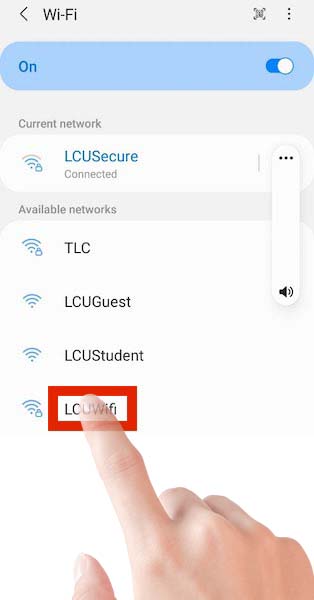 Go to your Wi-Fi settings on your device and select LCUWifi